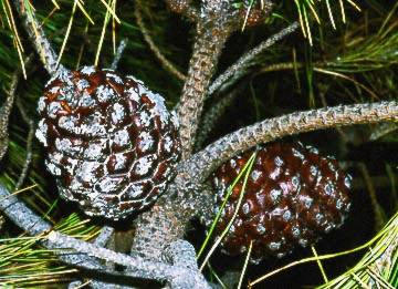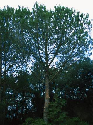 Ha il tronco ruvido, alto e snello, spesso pieno di resina.